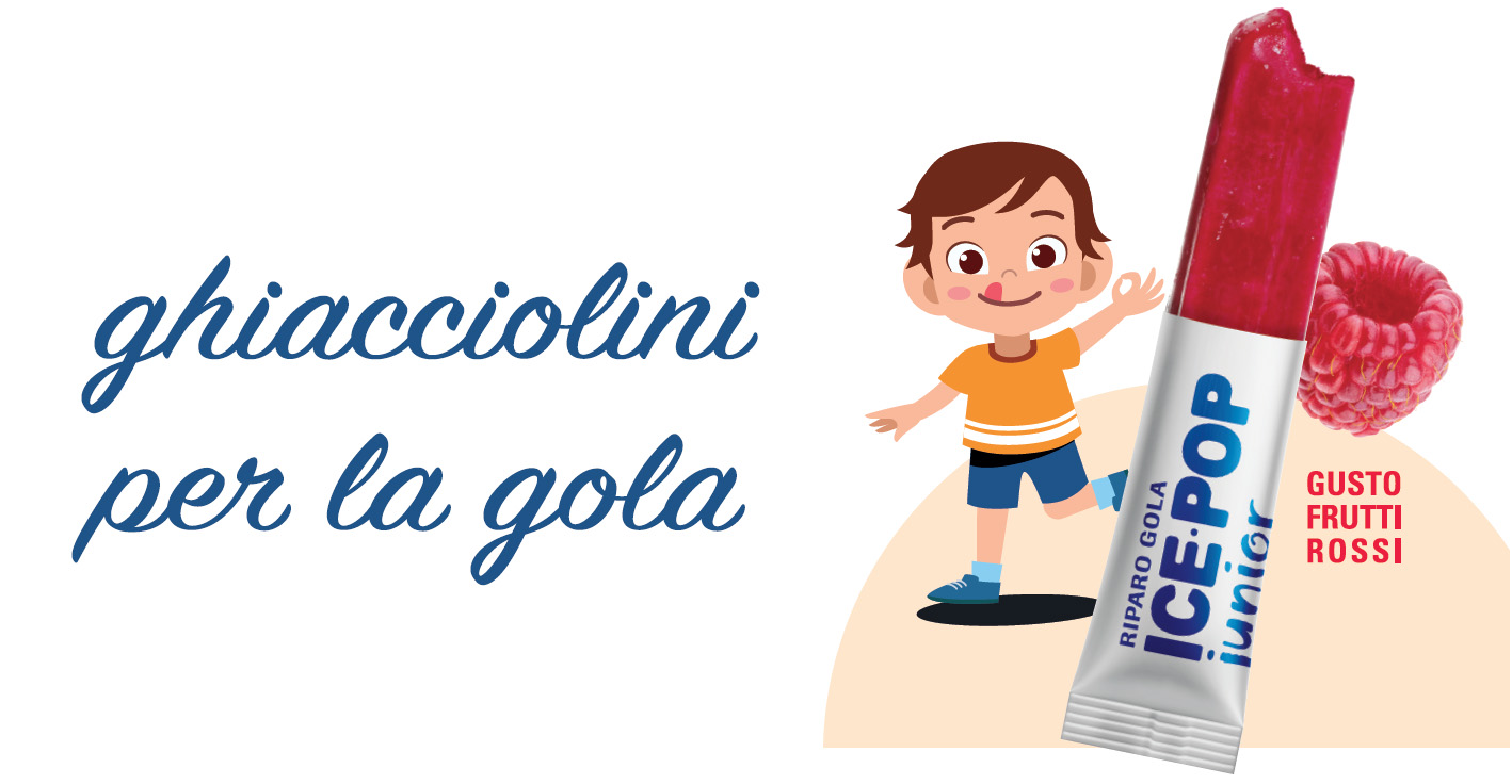 Nasce così il nuovo RIPARO GOLA ICE-POP JUNIOR, integratore alimentare in stick pack congelabili adatto ai bambini a partire dai 3 anni.
