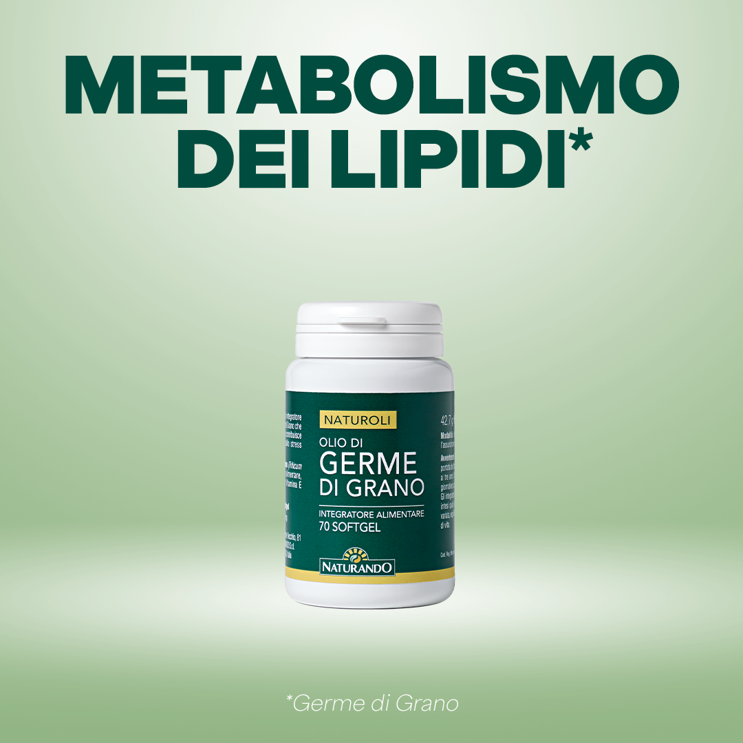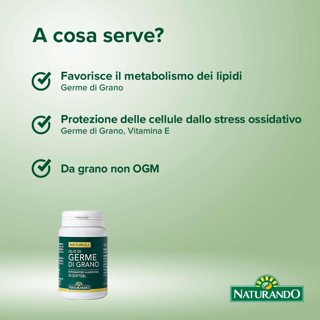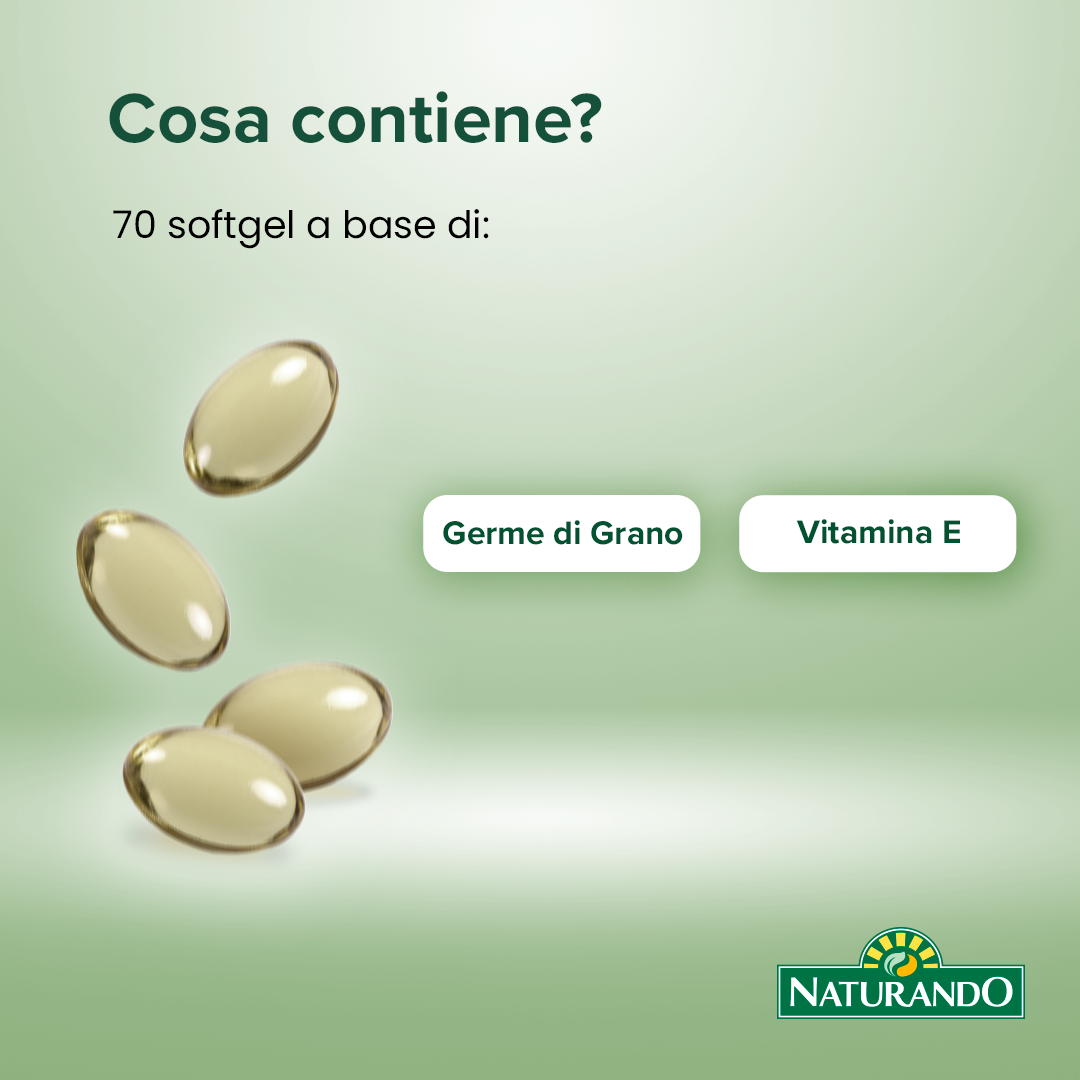 Dietary supplement in softgels with Wheat Germ Oil and Vitamin E.